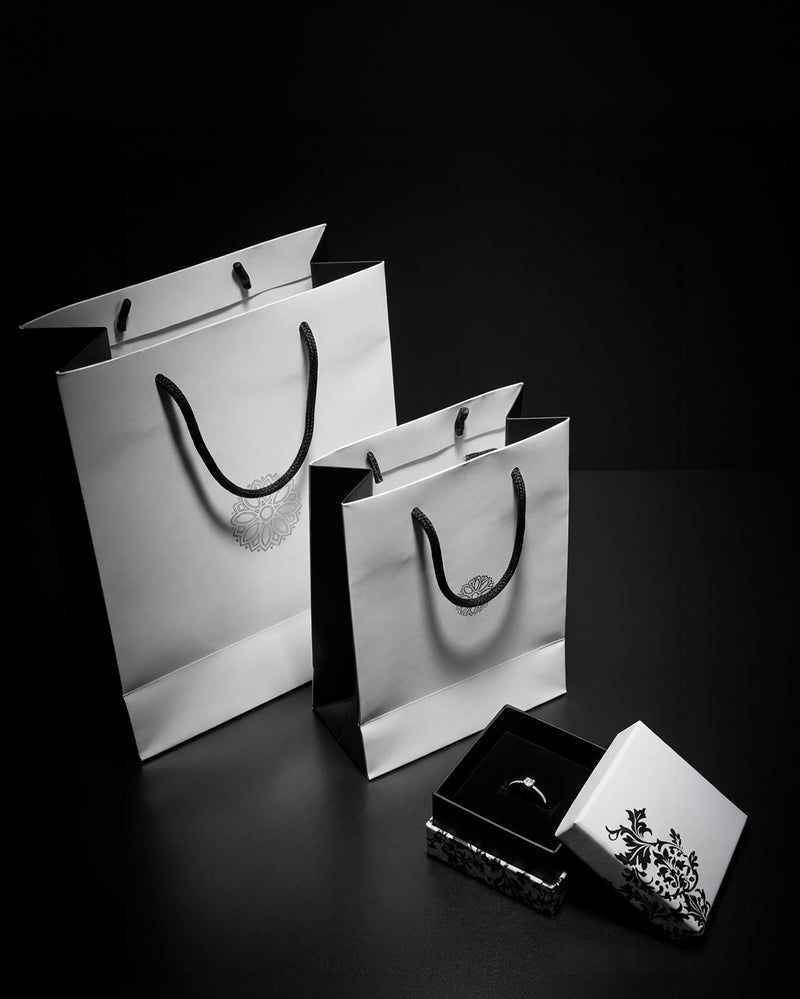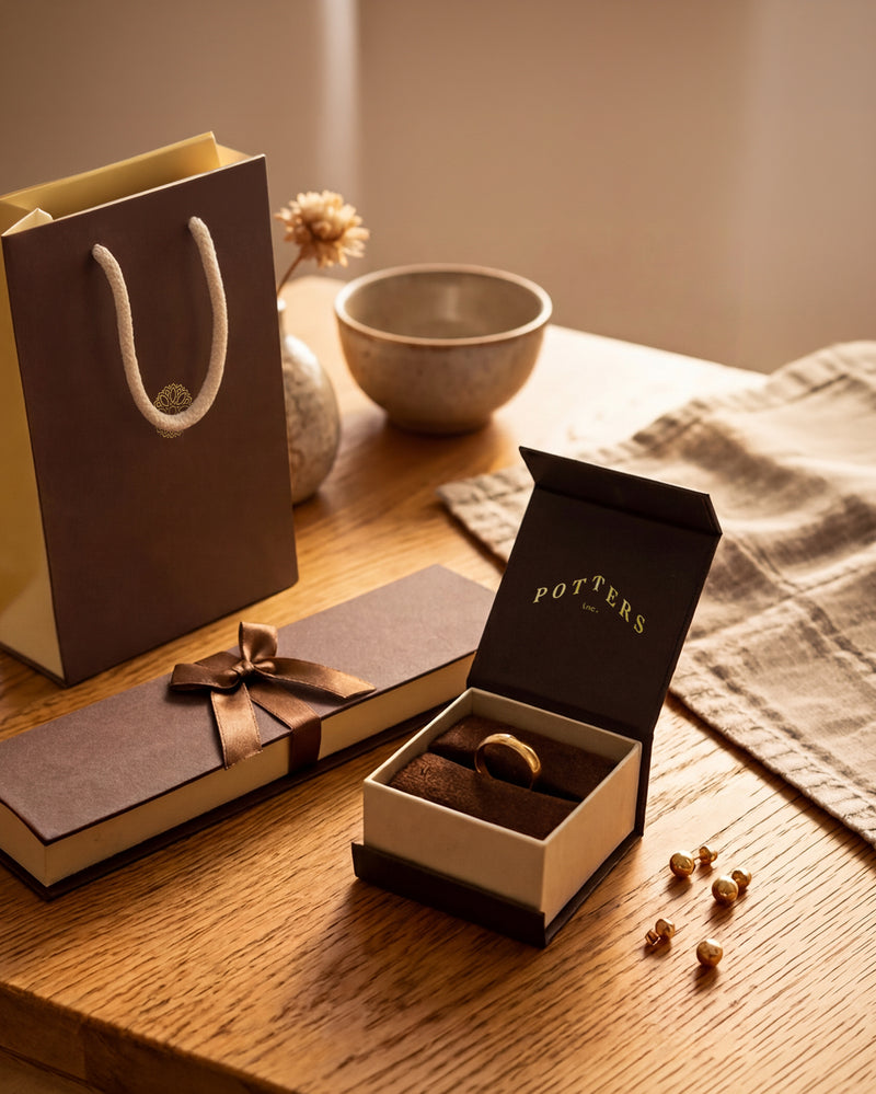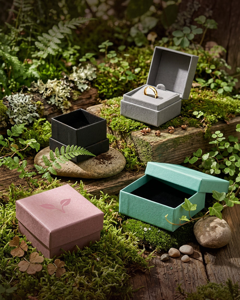 Karina Krafts is committed to transparent, sustainable packaging, from responsibly sourced jewellery boxes to gift pouches and bags.