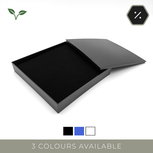 Recycled plastic has never looked so good. The EU-manufactured Futura box range is both recycled and recyclable. Unique in shape, with a gentle doming on both the top and base, plus a subtle recess for ease of opening, Futura is modern, sleek, and innovative.