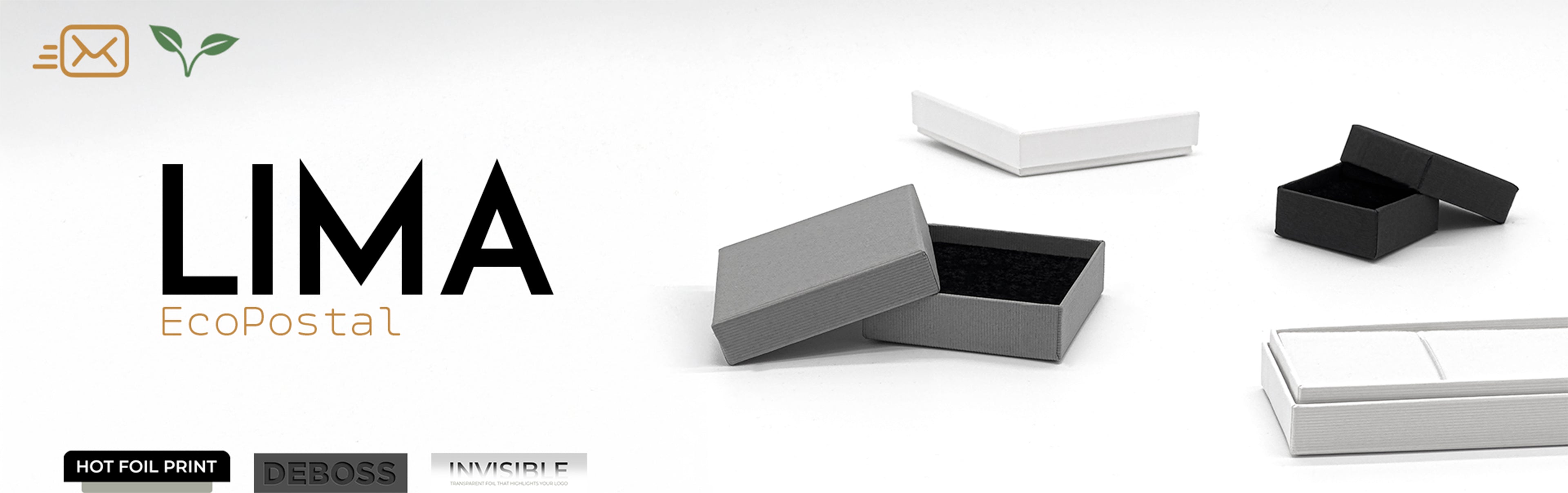 The perfect replacement for Potters EcoPostal. Lima 19mm EcoPostal is an inexpensive, yet quality range of ribbed paperboard boxes suitable for all manner of jewellery and gifts that will keep postal costs down. Available in ribbed Black, White and Grey.