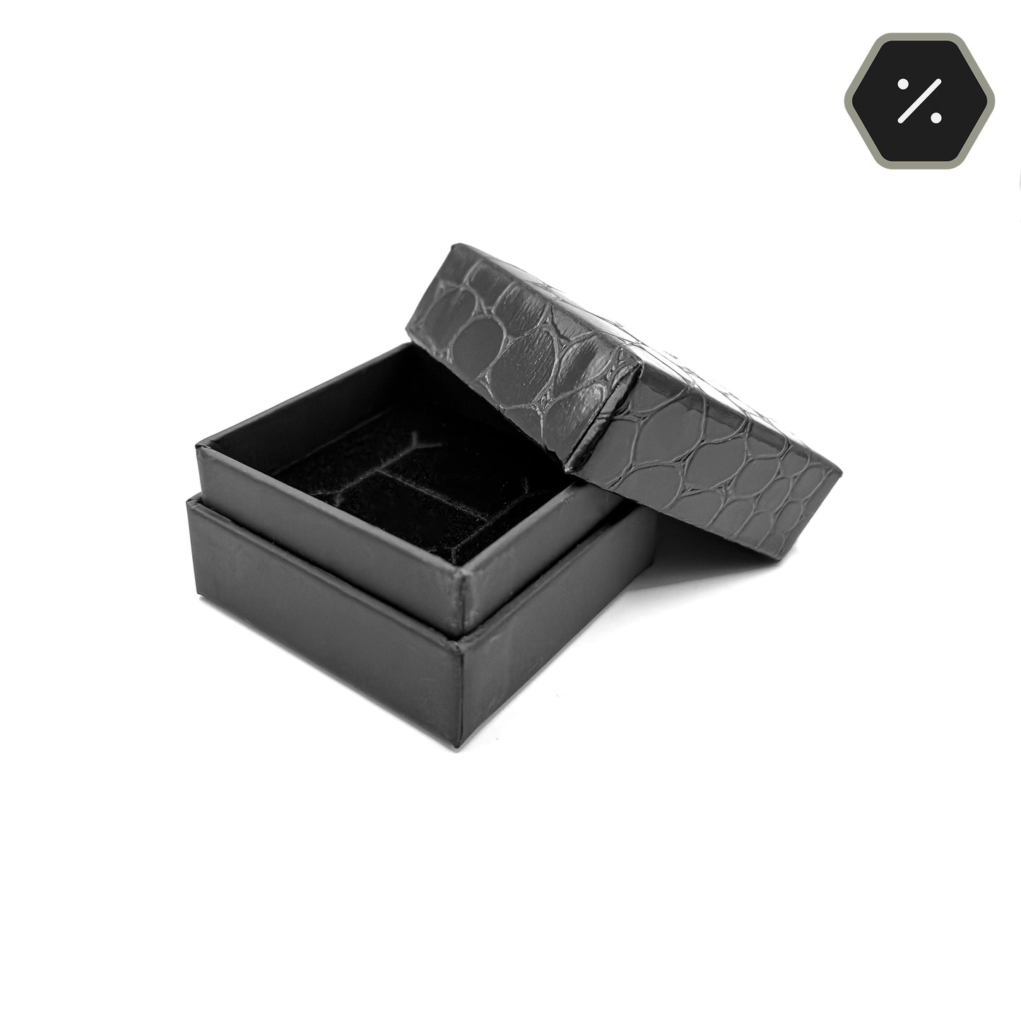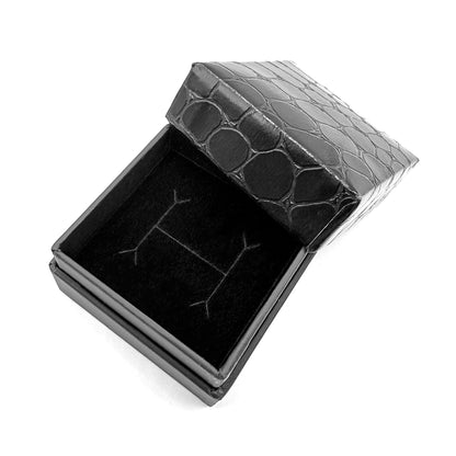 This unique little ring box impresses with its glossy, acrylic-coated paper lid. It is scratch-proof and feels robust, and imitates the look and feel of crocodile skin. The base is made of a sturdy card, complete with a 15mm black foam insert, pre-cut to accommodate a ring. The Amazon ring box truly stands out from the crowd.