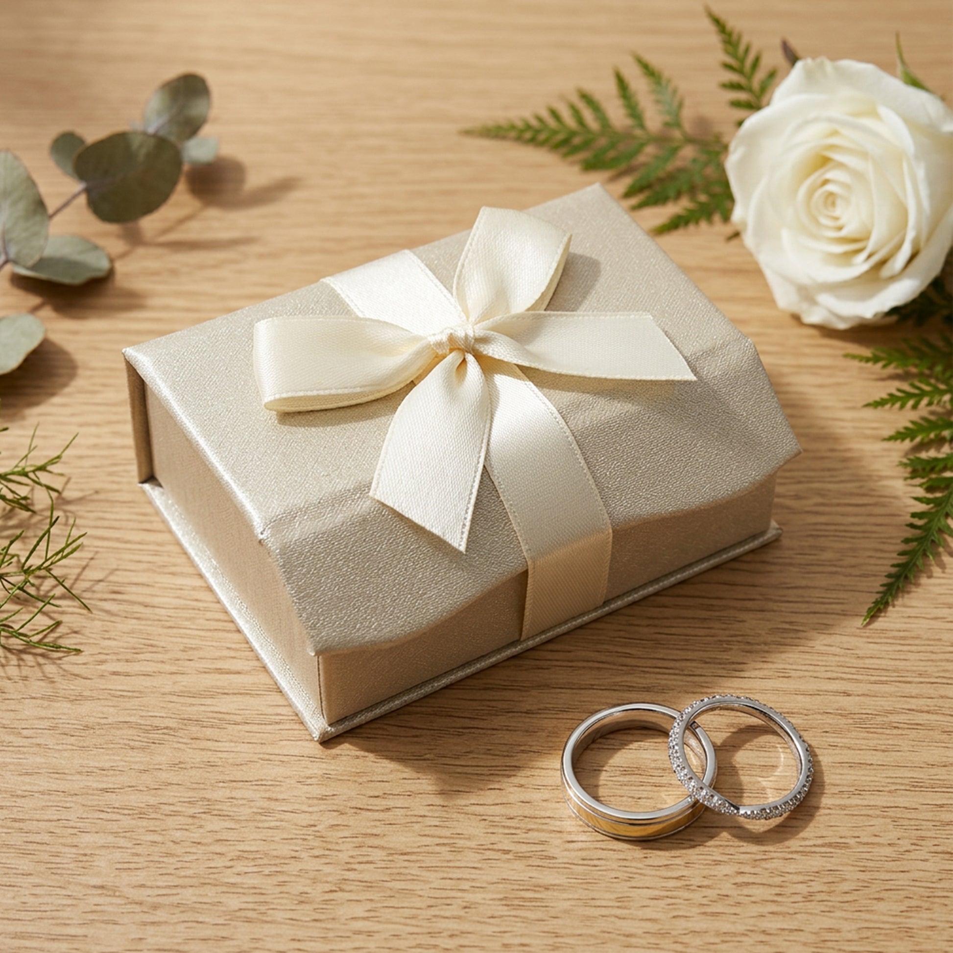A perfect pair of wedding bands deserves the perfect box. A standout piece in the beloved Beau collection, the Ivory Satin Double Ring Box is designed to hold two wedding bands—from the moment of purchase to the walk down the aisle. With its soft satin finish, signature magnetic bow closure, and pre-cut cream foam insert, it cradles each ring securely, side by side, ready for that unforgettable “I do” moment.