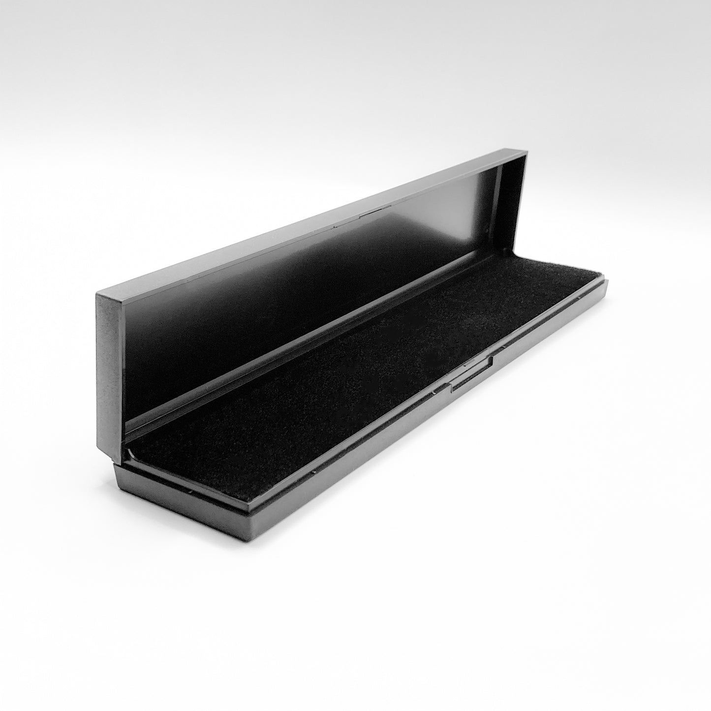 The Calais Bracelet is a great addition to your plastic case collection. Lay your piece down securely atop the flock-covered black interior foam pad; this foam pad does not come with pre-cut slits. A good fit for bracelets and thin watches.