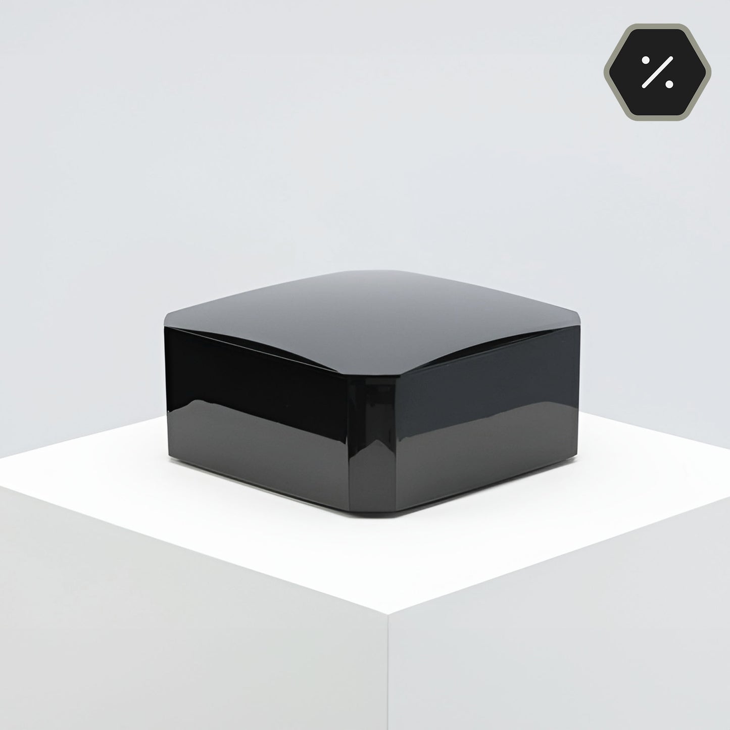 The Deep Universal plastic box is perfect for those oversized, statement bangles or watches. With its all-black, high-gloss retro finish, cut-off corners, and soft cotton filling, it is a fantastic budget option that offers flexibility beyond just jewellery items due to the absence of fixings.