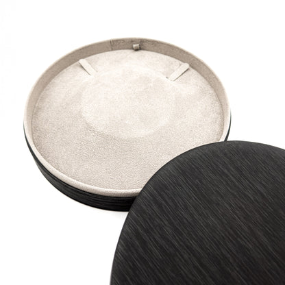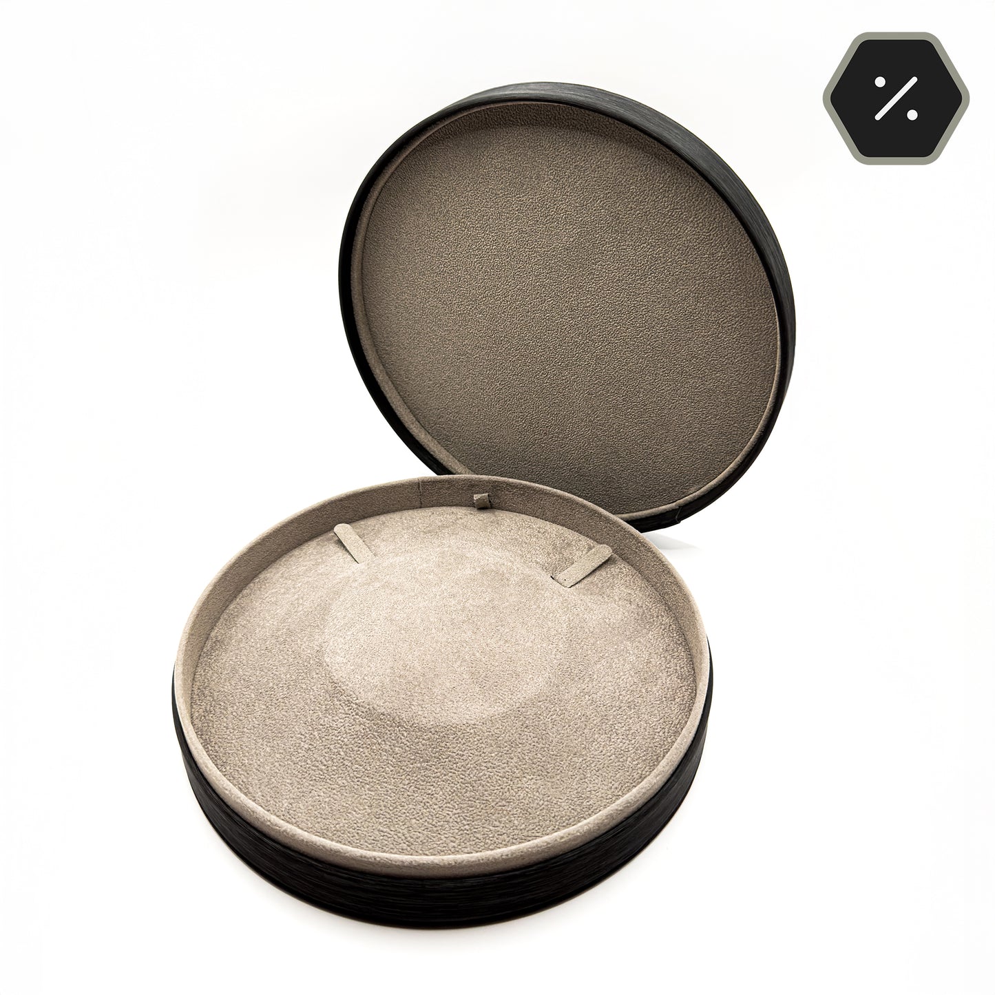 The epitome of luxury. Our Dubai Necklace box, cylindrical in shape, offers ample space inside for your best piece. The exterior, cushioned lid is finished with an imitation silk material that elegantly reflects the light. An elaborate addition to your window jewellery display.