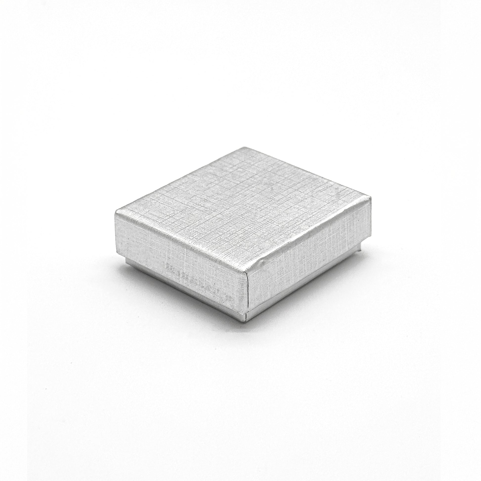 Ideal for rings, earrings, charms, and other small keepsakes, each unit is lined with soft, cushioned cotton wadding to protect and present your piece beautifully. Despite its minimal size, it offers a luxurious unboxing experience with its shimmering silver texture.