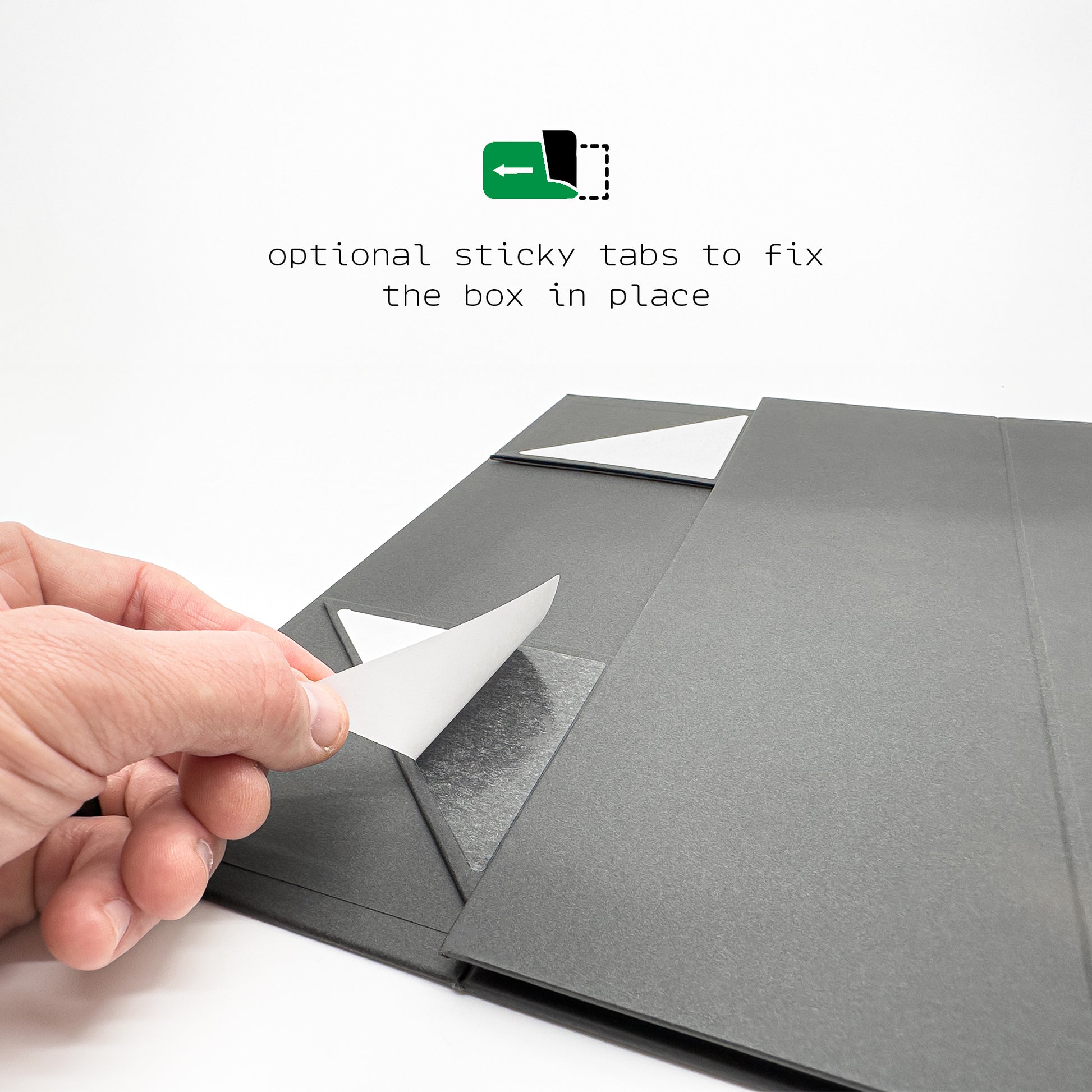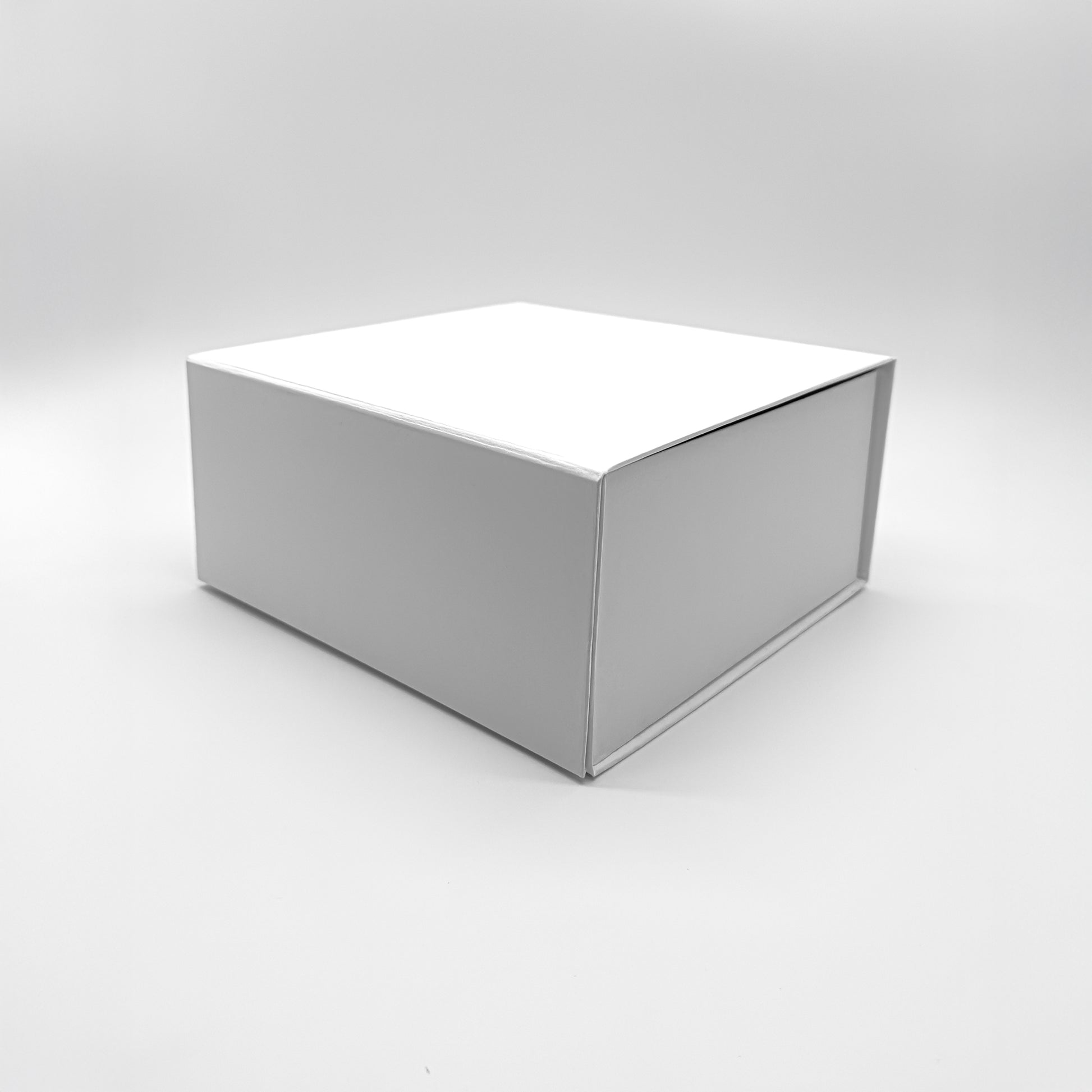 A hidden magnetic closure keeps everything secure, while options like tissue paper, custom foam inserts, or branded lids make it uniquely yours. Each unit also comes with sticky tabs that can either be left alone, or removed to fix the box in place. Limitless possibilities with The Gift Box.