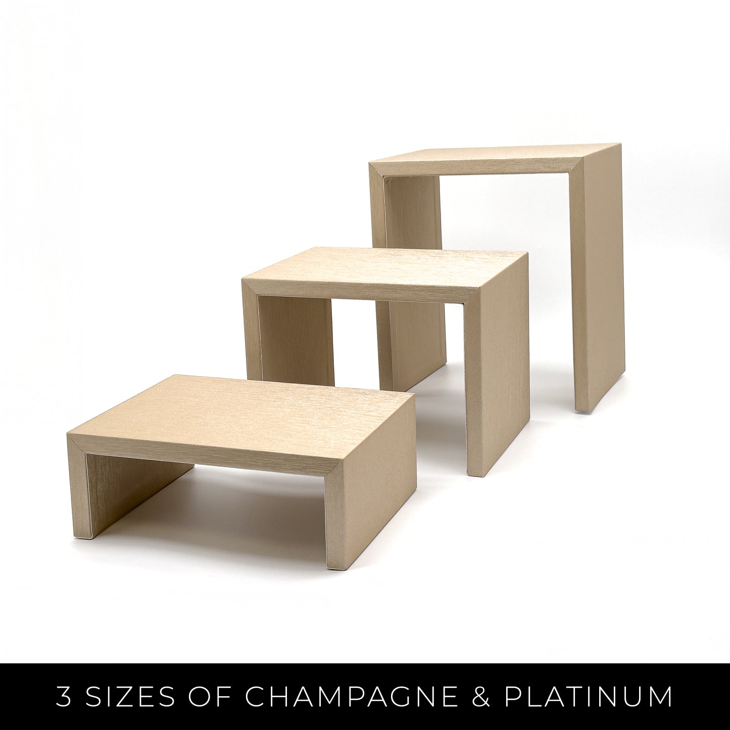 Impressions | Platform Display Riser - Premium Soft-Touch Imitation Silk, Champagne & Platinum