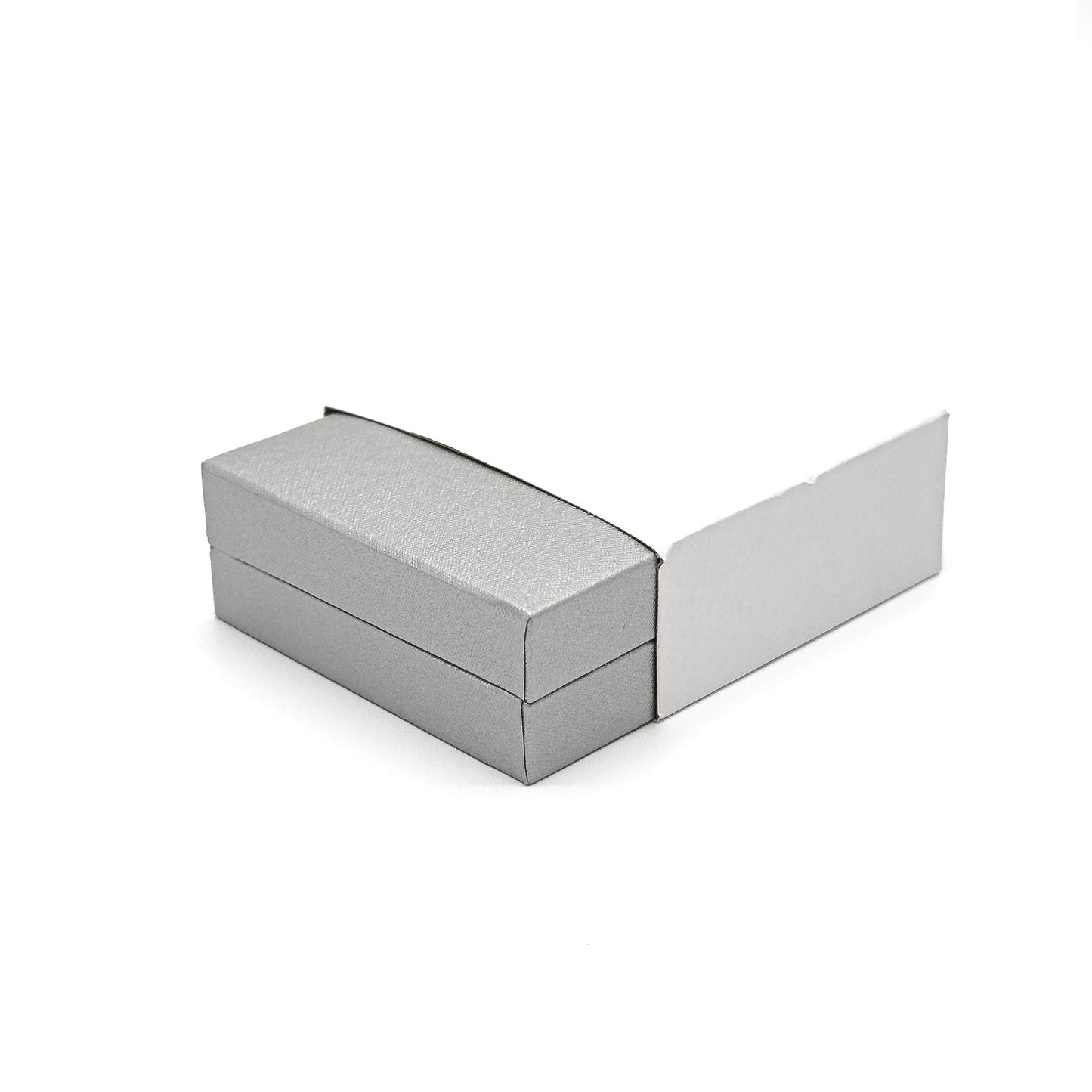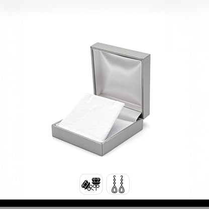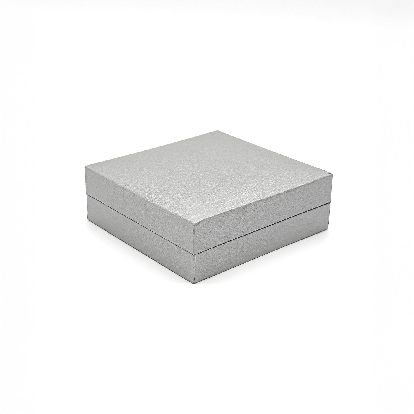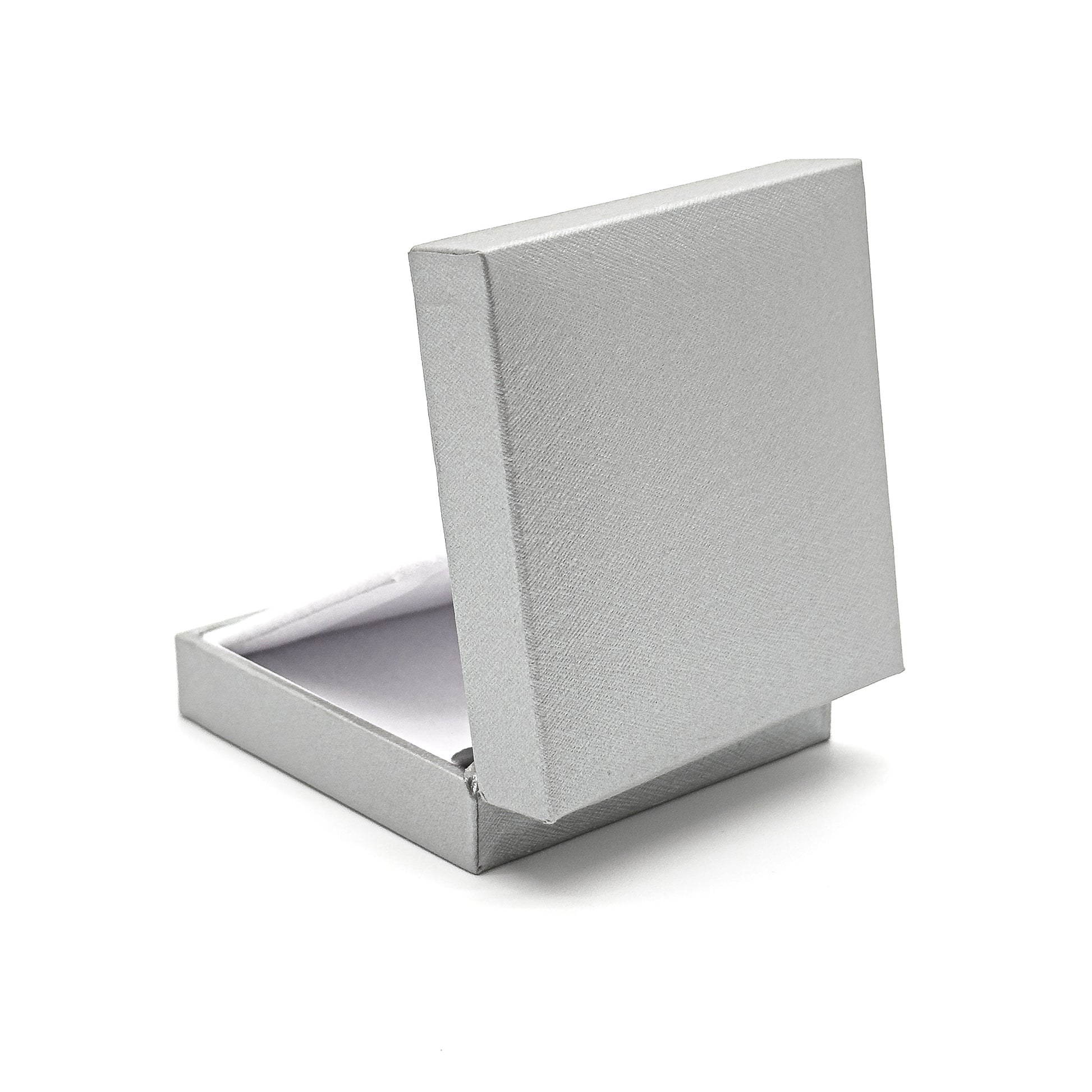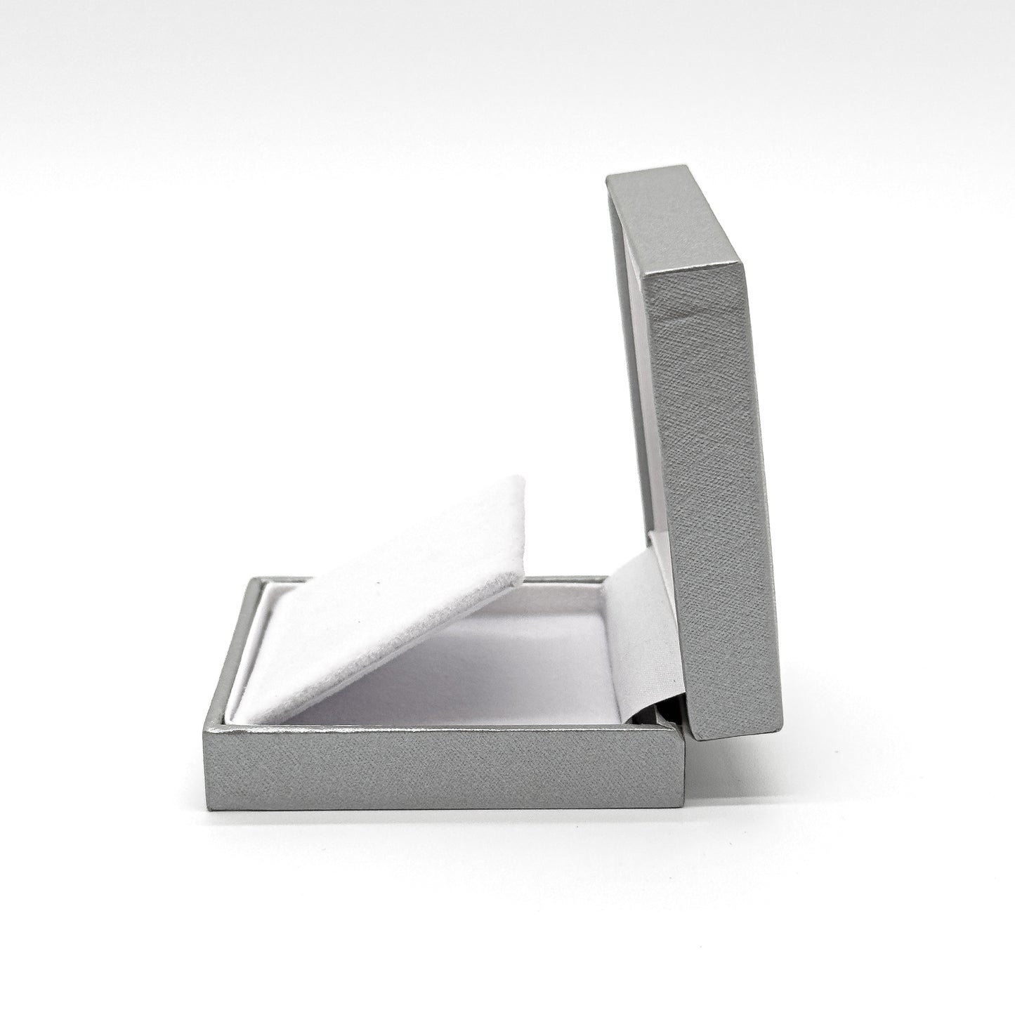 A refined little case wrapped in quality Argent Silver leatherette paper with subtle detailing on the lid and body. The velveteen drop base interior showcases earrings or small pendants beautifully. A must-have for the modern jeweller. Each unit is supplied with a white, protective card sleeve.