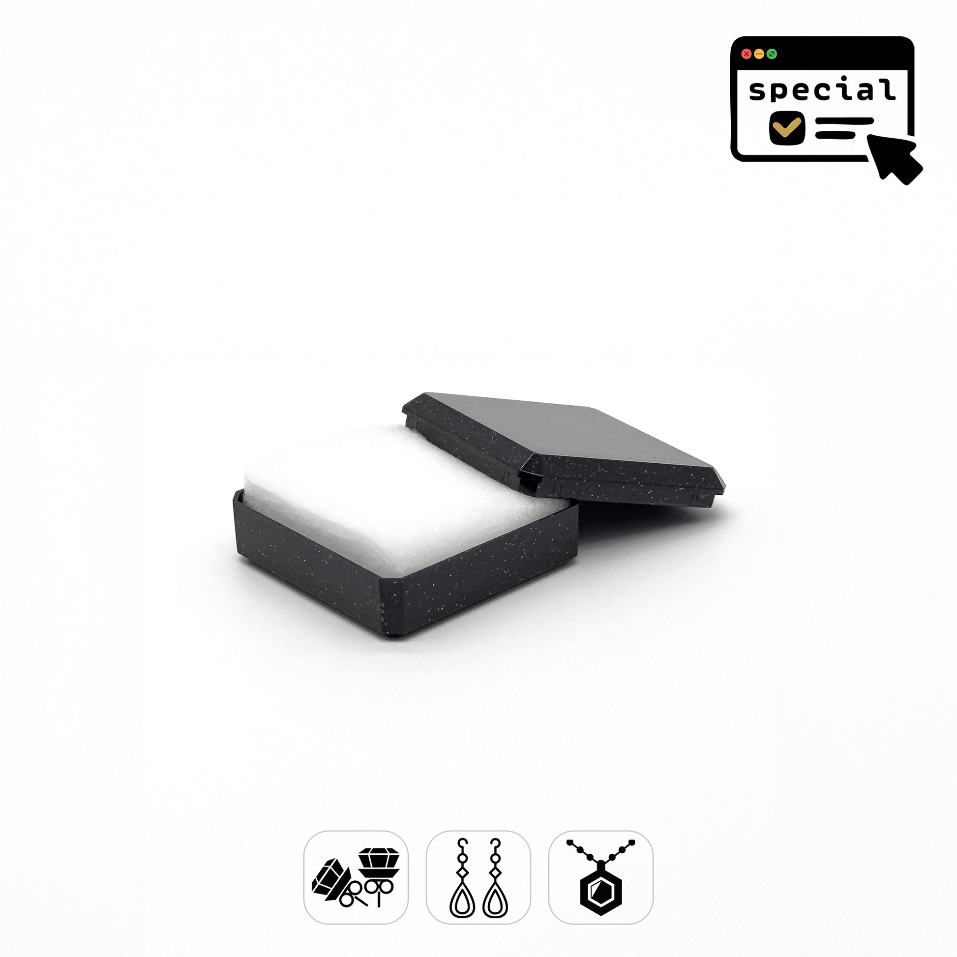 A charming, sparkled 40x40mm plastic gift box designed to hold small jewellery and treasured keepsakes. Its plush white cotton insert offers a soft, secure base for delicate items, making it perfect for any occasion. Sleek, versatile, and ready for special order today.