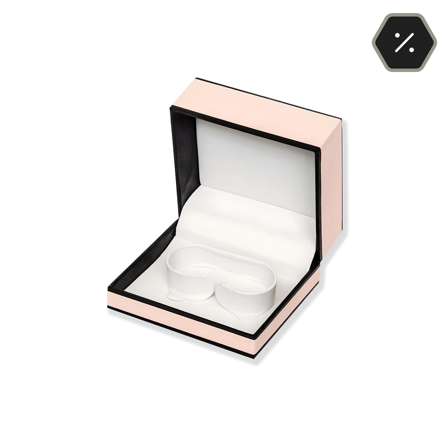 Protect and present your best timepiece in the elegant St. Tropez Watch / Bangle Case. Wrapped in a timeless, pale pink, reptile-textured paper and accented with bold black trim, this chic case delivers modern sophistication. Inside, your piece rests securely on a soft ivory PU leather base, supported by a robust centre clip and cushioned top pad – ready for a touch of custom branding.