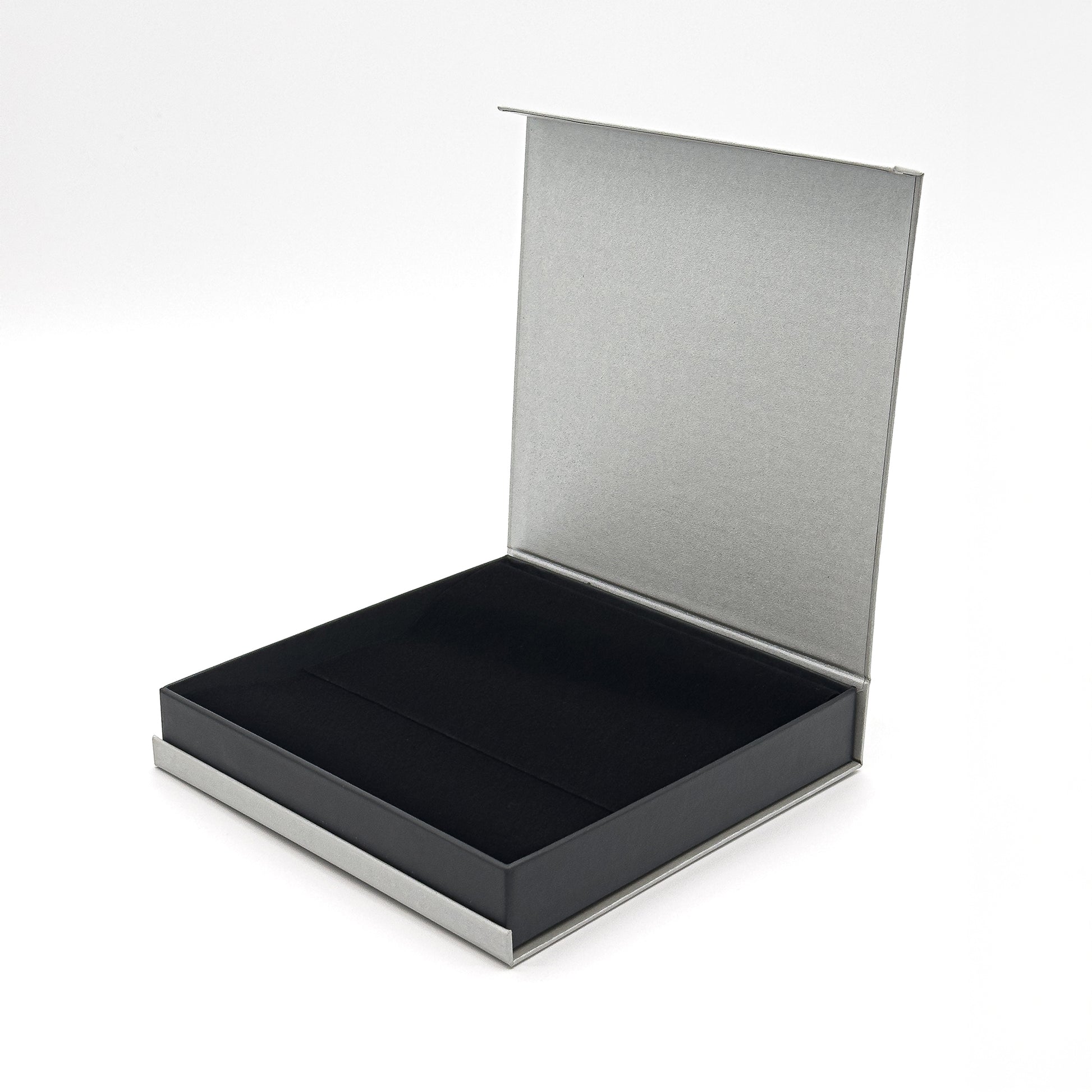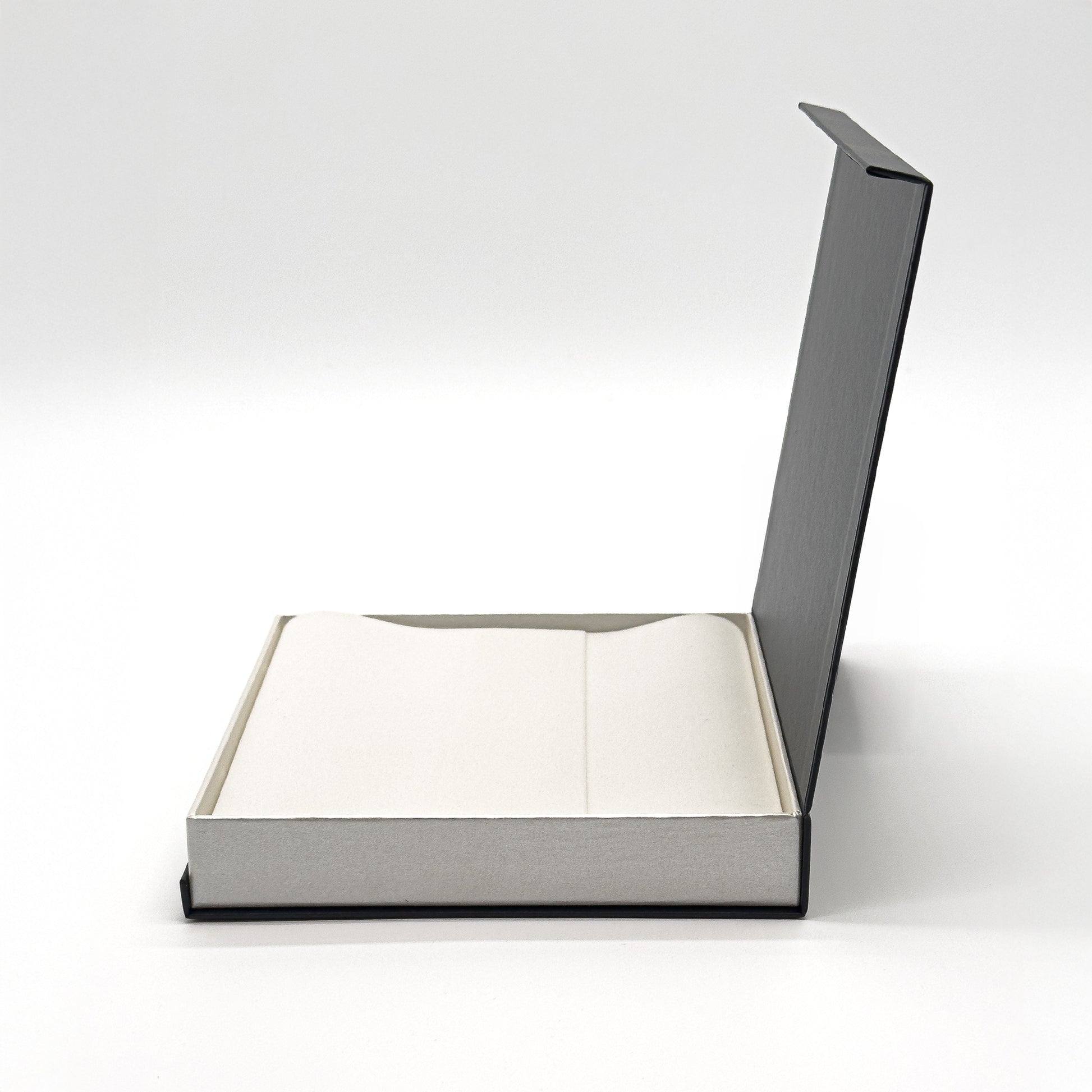 This elegant gift box is perfect for statement pieces and small jewellery sets. Designed to hold necklaces, rings, earrings, or pendants, it’s a beautifully versatile option. A luxurious silk “curtain” insert adds both protection and presentation, making it ideal for premium gifting or display.