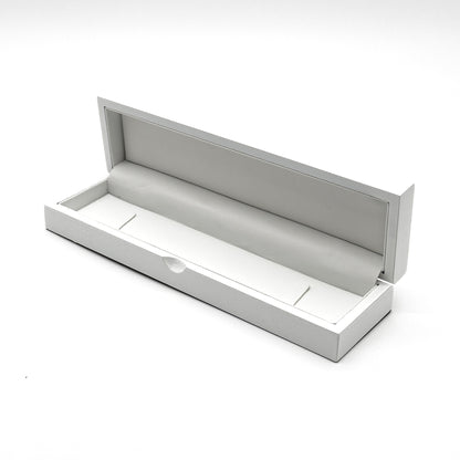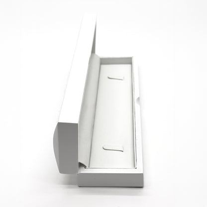 This wood case is the epitome of inexpensive luxury. A hinged, hardwood gloss case with a luxurious, white PU leather interior complete with a cushion pad with 2 clips to hold your bracelet in place. The Windsor Bracelet case is a stand-out option.